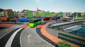 Wie in der Realität steigen an den Busbahnhöfen die bereits über Ticket verfügenden Fahrgäste über den Check-In ein, während neue Gäste ein Ticket erwerben müssen.