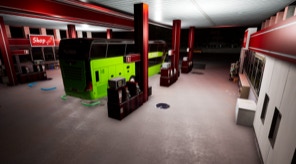 Wie in der Realität steigen an den Busbahnhöfen die bereits über Ticket verfügenden Fahrgäste über den Check-In ein, während neue Gäste ein Ticket erwerben müssen.