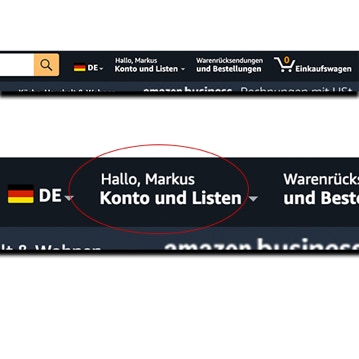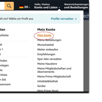 Gehen Sie auf Ihr Konto = „Konto und Listen“